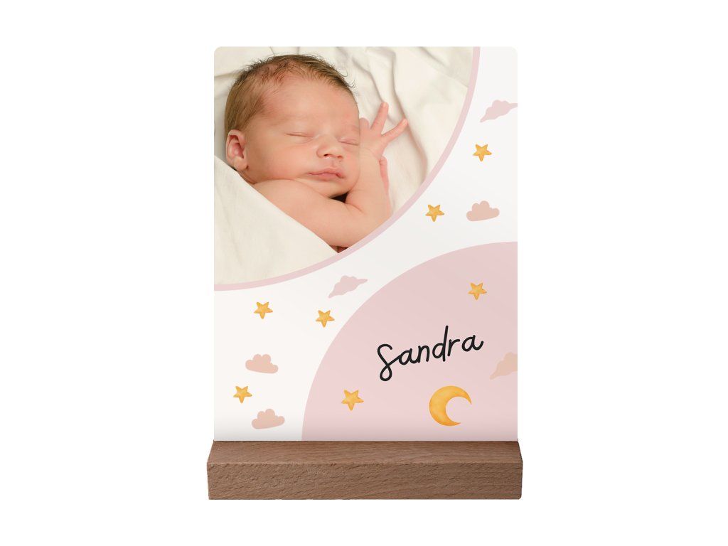 Fotografia je vyrobená z vysoko kvalitných materiálov a je odolná voči poškodeniu, poškriabaniu a poveternostným vplyvom. Odporúčame ako originálny darček pre vašich najbližších. Vďaka unikátnemu dizajnu a prepracovanému prírodnému podstavcu sa fotografia stane aj štýlovou dekoráciou hodiacou sa do každej miestnosti. Nechajte fotografiu svojho bábätka žiariť v krásnom prírodnom materiáli, akým drevo bezpochyby je.