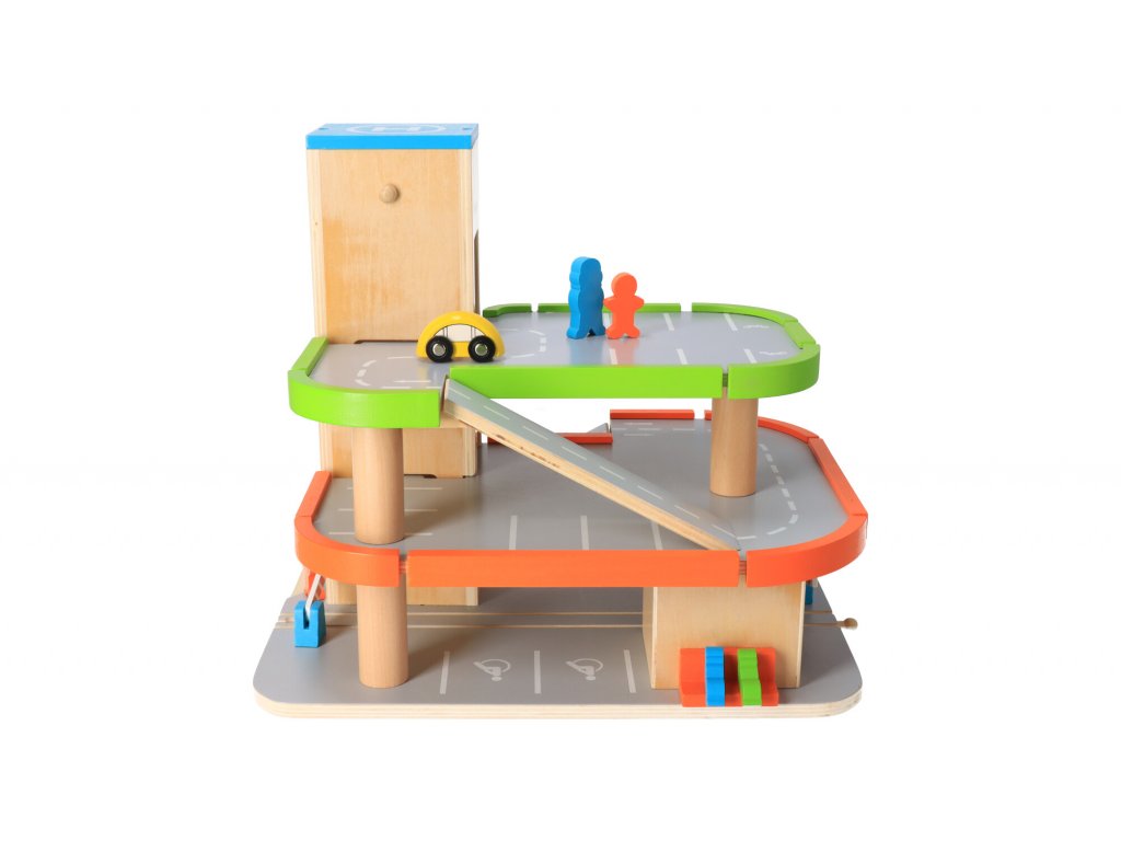 Stereotyp a jazdenie po zemi zmení trojposchodová garáž, ktorá navyše obsahuje závory, autíčko a šesť figúrok.