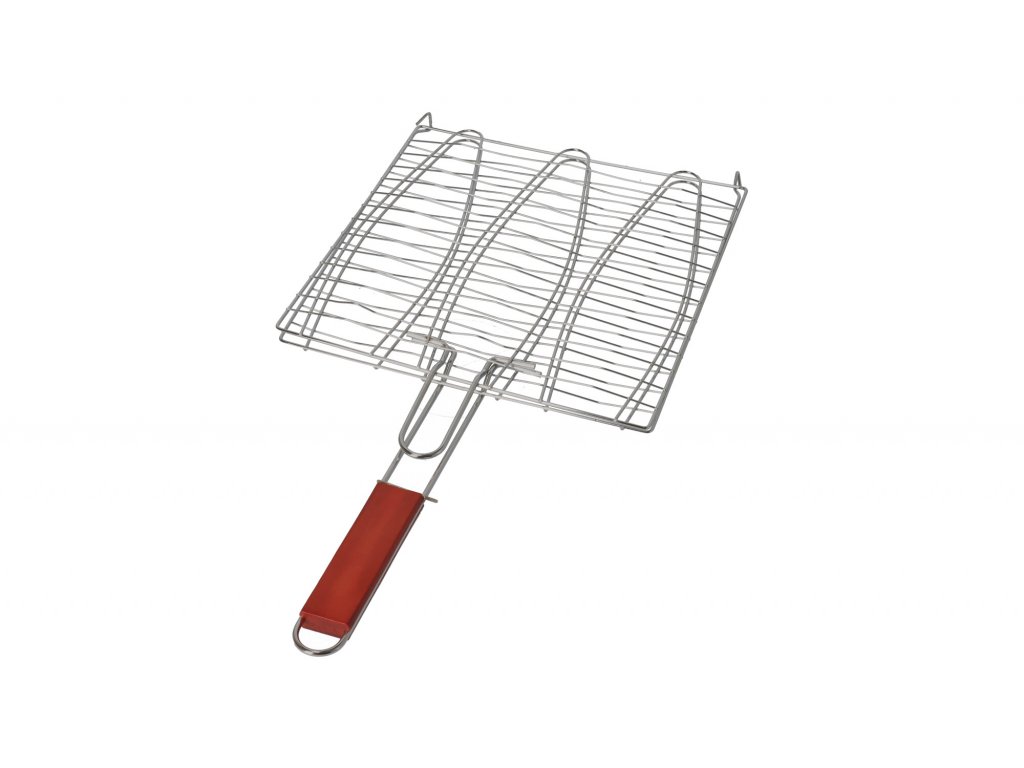 Oceľový rošt s dreveným držadlom na grilovanie čerstvých rýb vám uľahčí obracanie a manipuláciu počas grilovania.