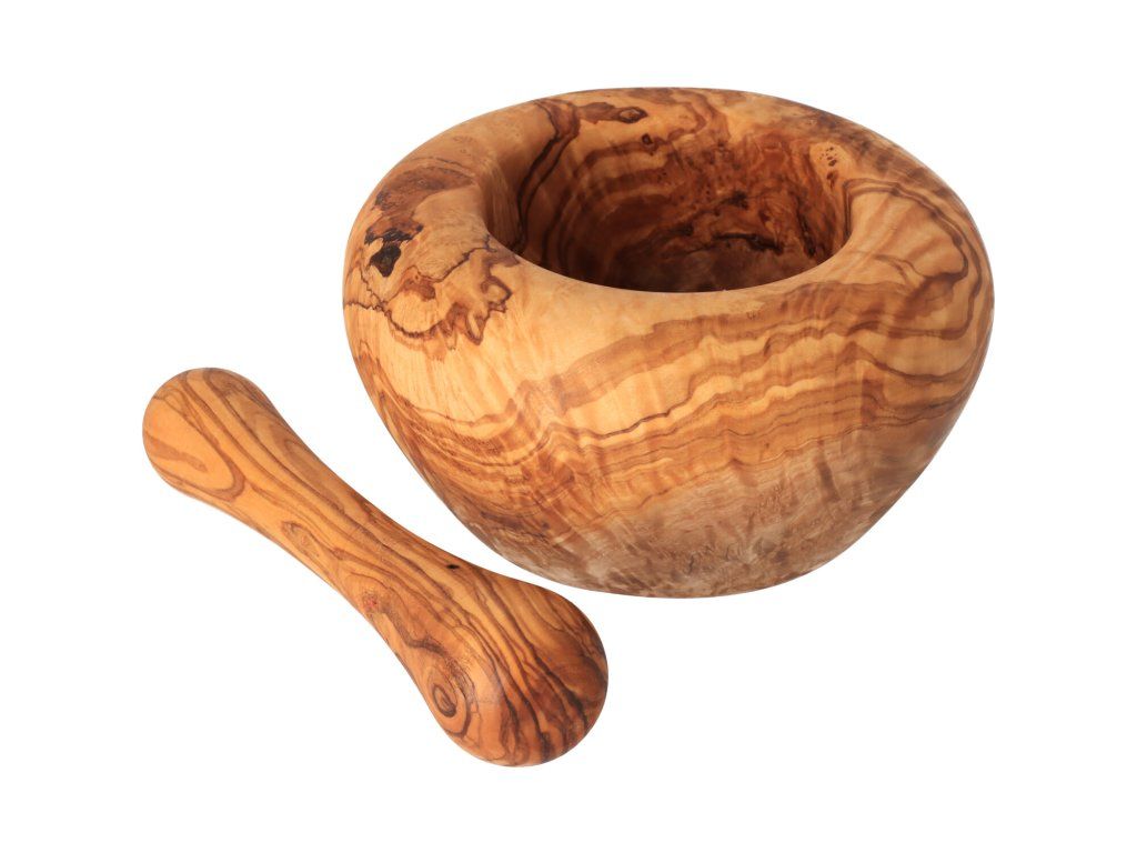 Mažiar z olivového dreva umožňuje kombinovať korenia, pripravovať omáčky alebo pesto. Je veľmi pevný a odolný, vďaka čomu môžete rozdrviť takmer všetky prísady.
