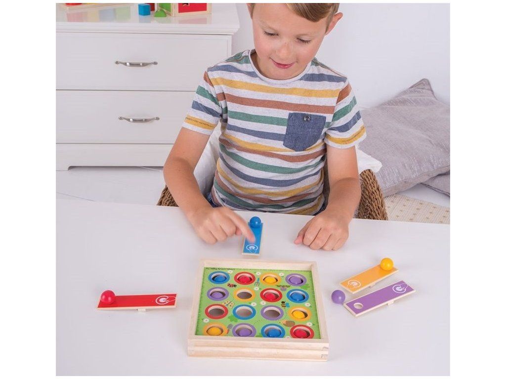 Vyhráva hráč, ktorý umiestni všetky štyri farebné guľe do správnych dier.