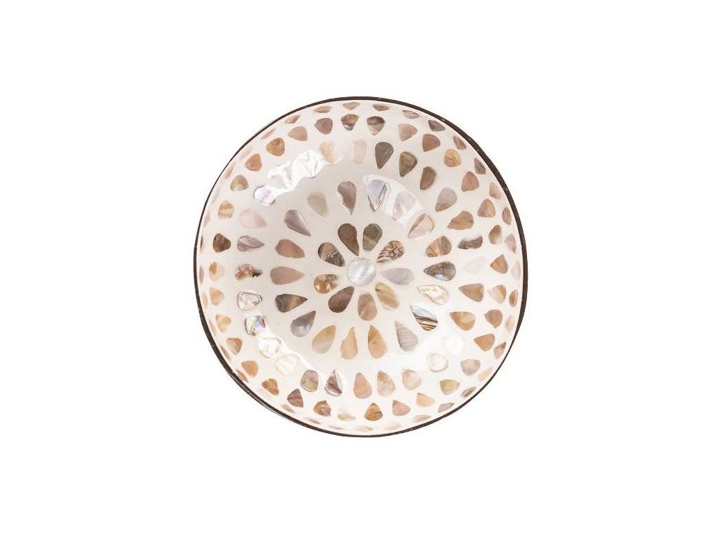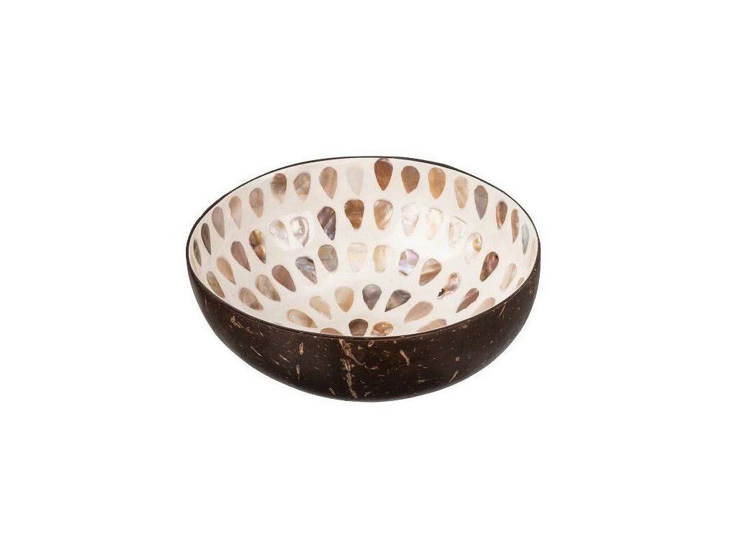 Ručne vyrobená lakovaná miska s motívom kvapiek vo vnútri je výsledkom práce farmárov z Bali. Jedná sa o originálny výtvor zo skutočného kokosového orecha.