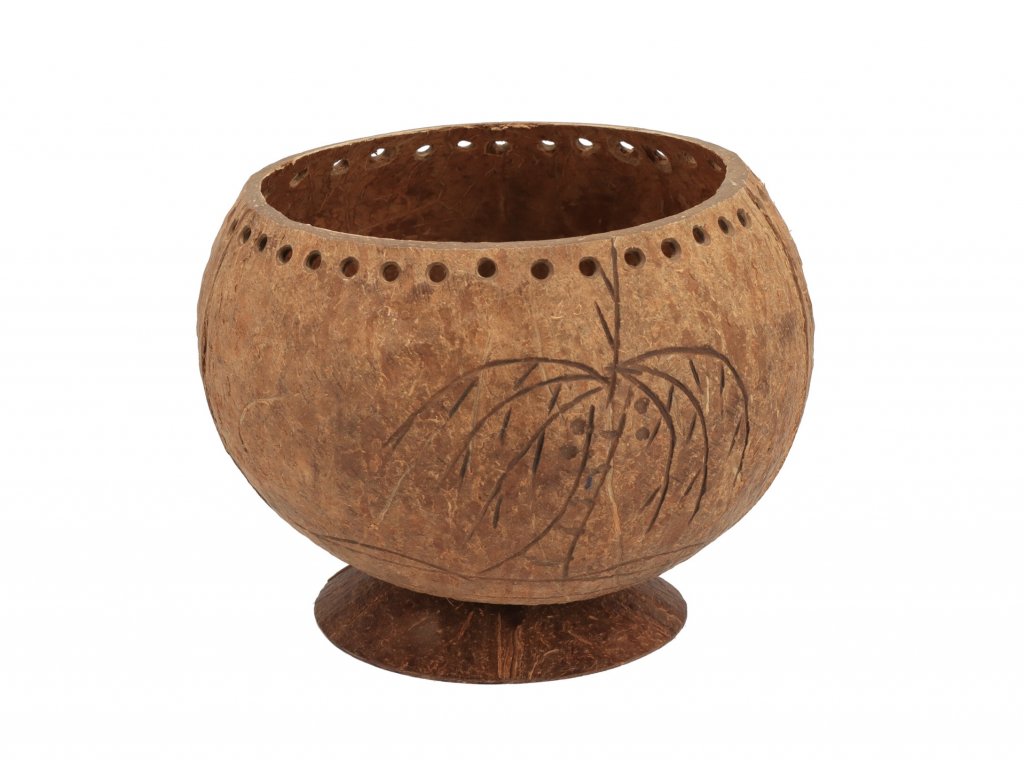 Kokosový kvetináč bude krásne prezentovať farebné kvety, zelené rastliny a byliny. Možností je mnoho, ale môžete ho napríklad naplniť čerstvými a aromatickými bylinkami a umiestniť na kuchynský parapet, pretože pri varení sa budú vždy hodiť.