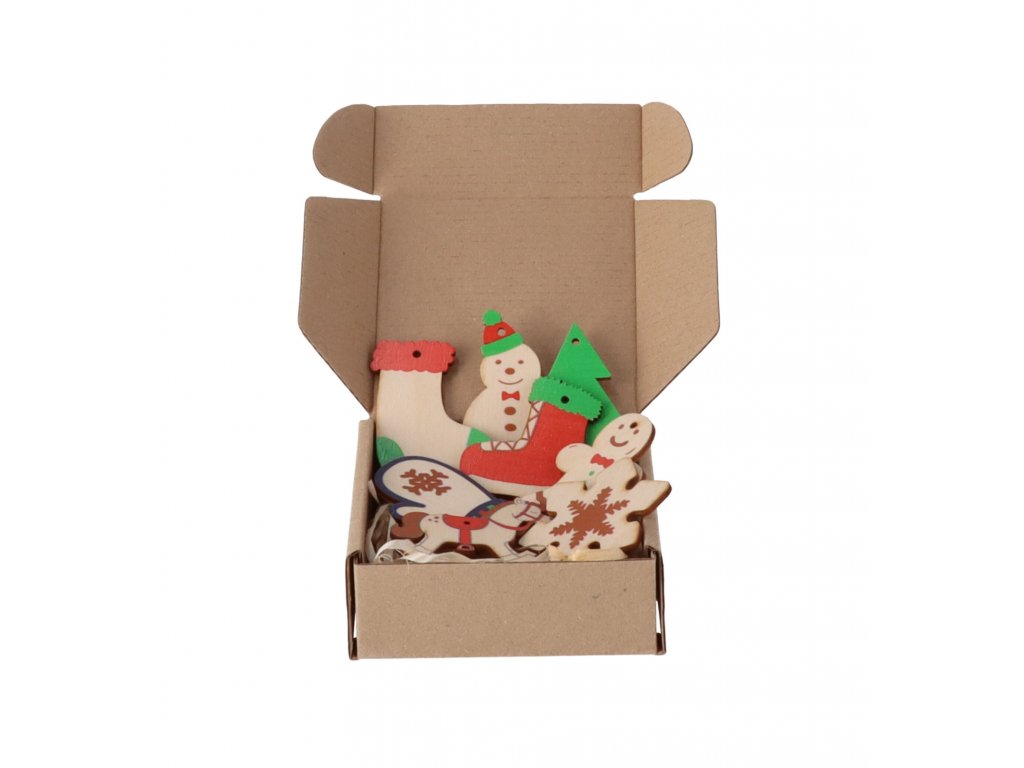 V balení nájdete stromček, snehovú vločku, hojdacieho koníka, snehuliaka, panáčika, rukavicu, ale aj ponožku a korčuľu. Všetky ozdoby majú výšku približne 6,5 cm a sú potlačené kvalitnou farebnou UV tlačou.