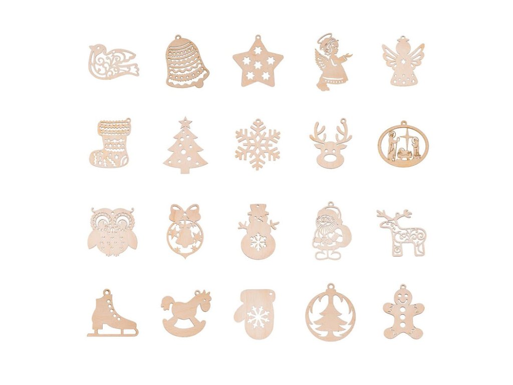 Kolekcia dvadsiatich kusov drevených ozdôb s našimi obľúbenými motívmi.