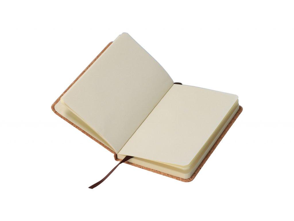 Poznámkový blok s korkovou obálkou a 160 vnútornými stranami z recyklovaného papiera sa ihneď zabýva na vašom kancelárskom stole.