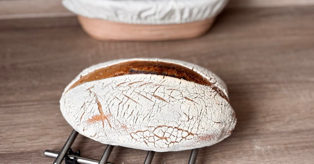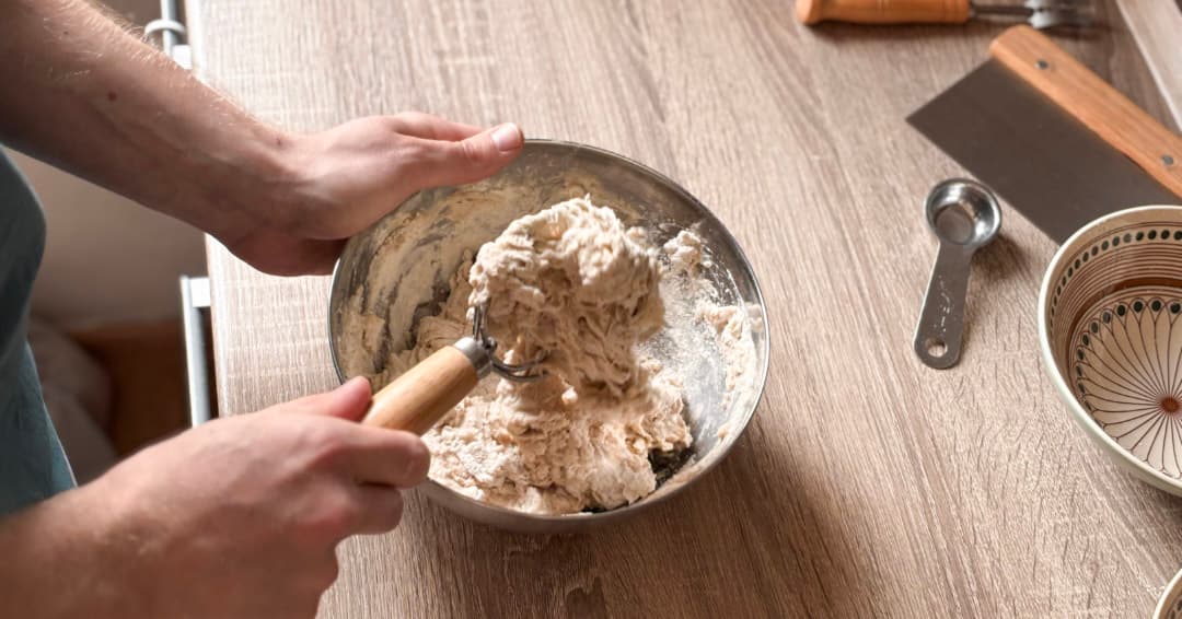 Tento recept sme otestovali s príjemnou hydratáciou 70 %. Cesto sa vám vďaka tomu nebude lepiť na ruky a po vyklopení z ošatky si krásne udrží tvar – ideálny štartovací bochník!