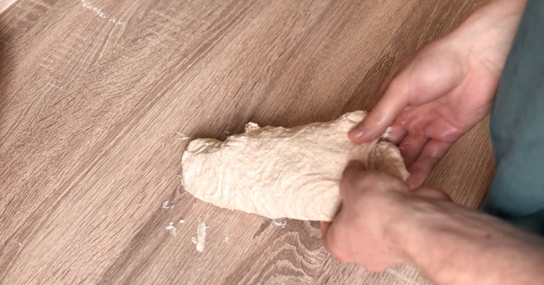Počas nasledujúcich 2–2,5 hodiny cesto každých 30 minút jemne preložte (tzv. stretch and fold).