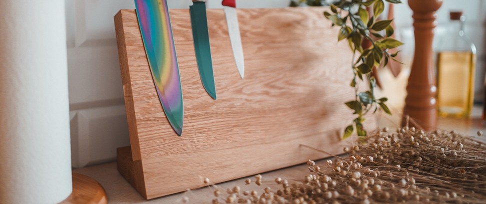 Elegantné a funkčné drevené magnetické lišty na bezpečné a štýlové uskladnenie nožov. Ostrie nožov tak vďaka magnetickým držiakom skvele ochránite.