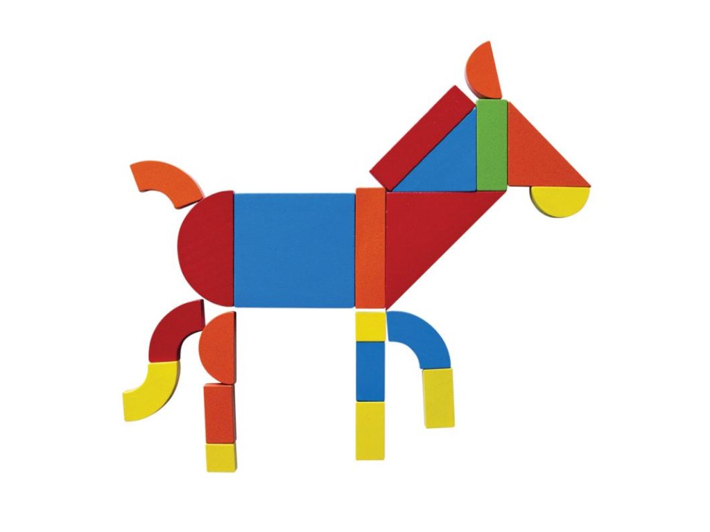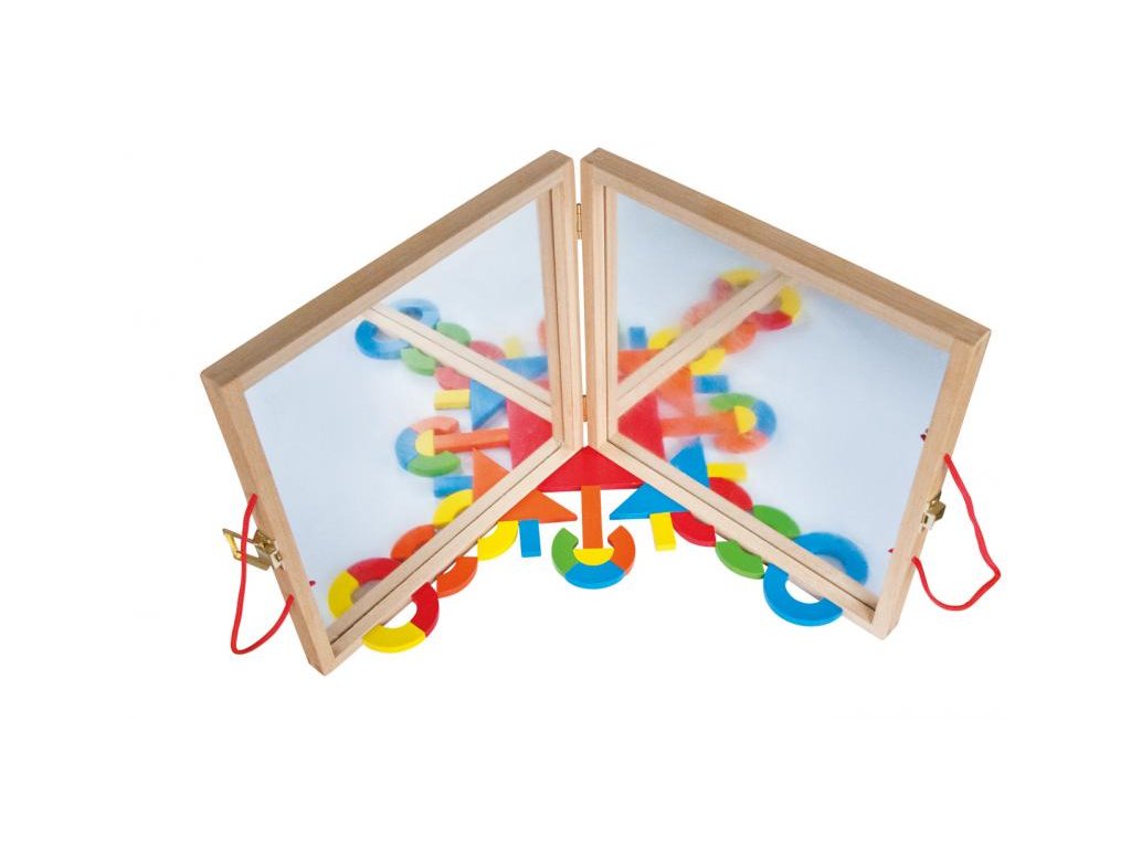 Tento interaktívny hrací kufrík ponúka hneď niekoľko aktív na hranie. Obsahuje 25 ks vzorových kariet, podľa ktorých si dieťa skladá obrázky na bielu magnetickú plochu. Z 42 ks magnetických tvarov si môže vytvárať aj vlastné obrázky podľa vlastnej fantázi