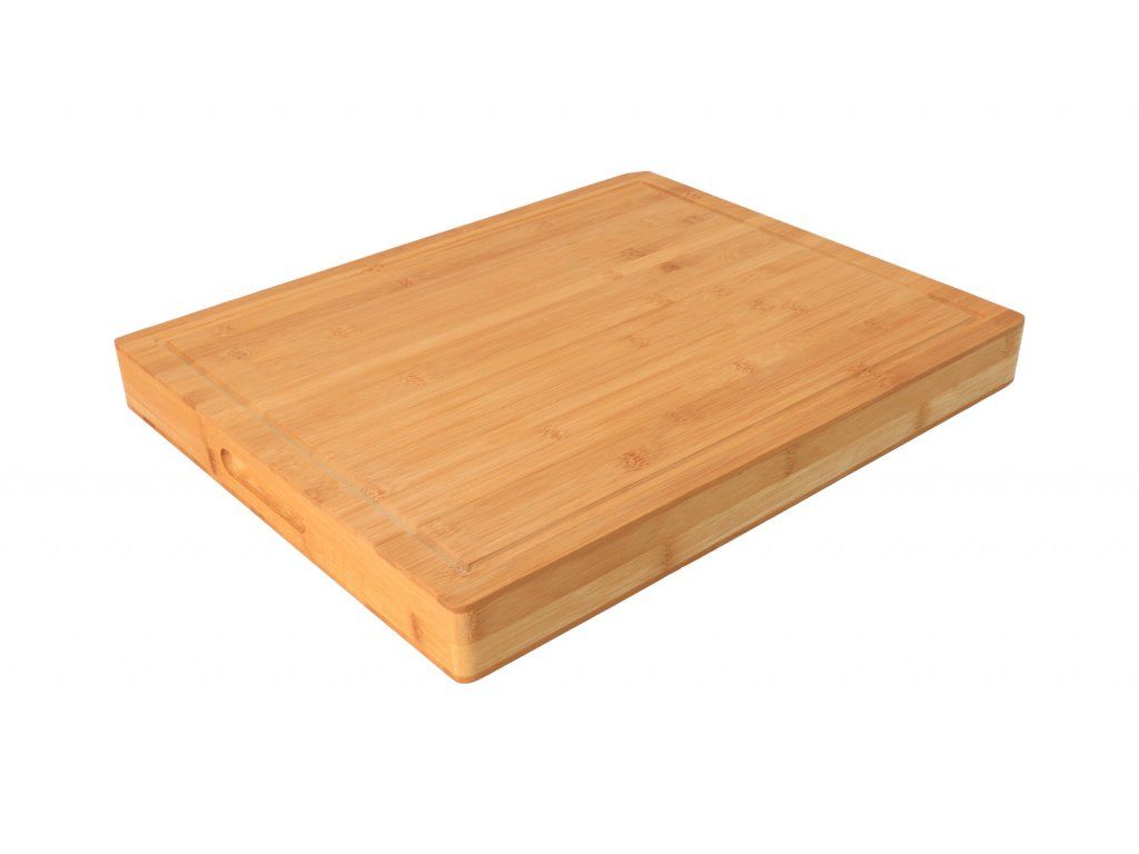 Masívna doska na krájanie s praktickými úchytmi pre ľahké prenášanie, vhodná na krájanie aj servírovanie pečiva, zeleniny, ale aj mäsa, vyrobené z kvalitného bambusového dreva. Drážka medzi okrajmi slúži k odvodu prebytočných tekutín.