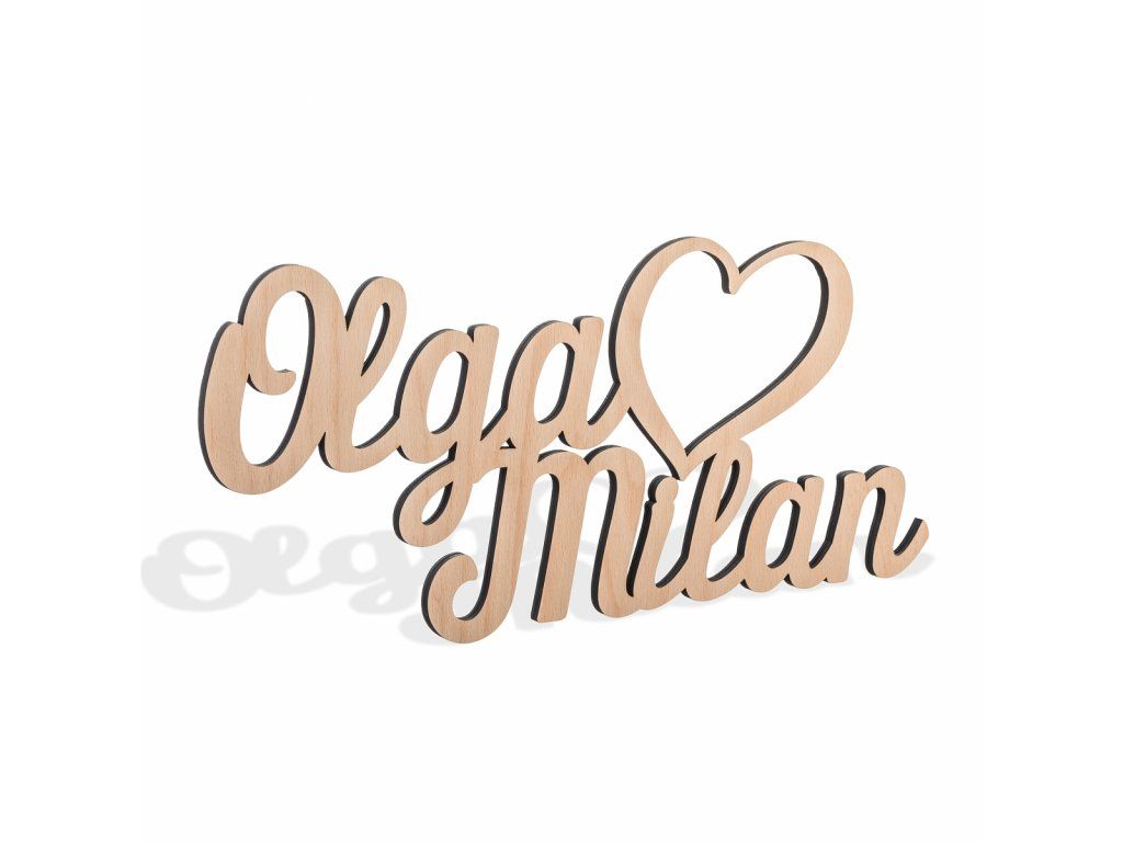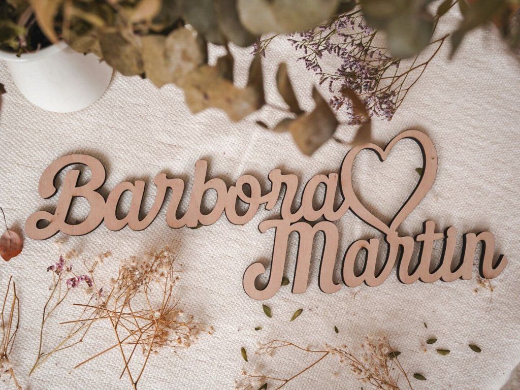 Romantická drevená menovka so srdiečkom je krásnou ozdobou pre špeciálne príležitosti a nielen pre nich.