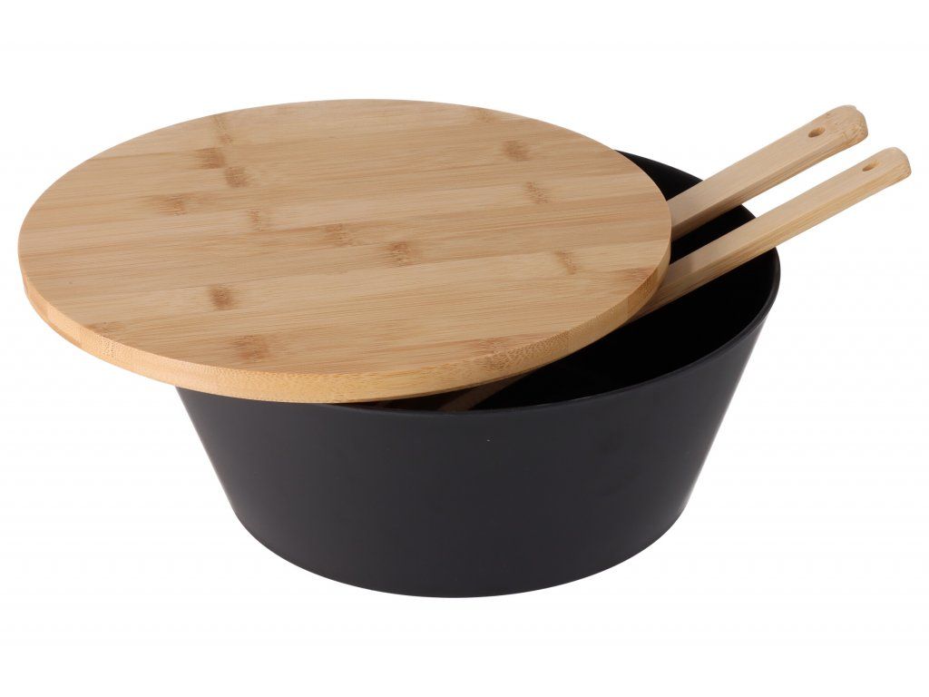 Praktická misa s prírodným bambusovým vekom a príborom je určená na prípravu jedla aj jeho servírovanie. Je ideálna na letné grilovanie a piknik, pretože drevené veko chráni pripravený pokrm pred dotieravým hmyzom.