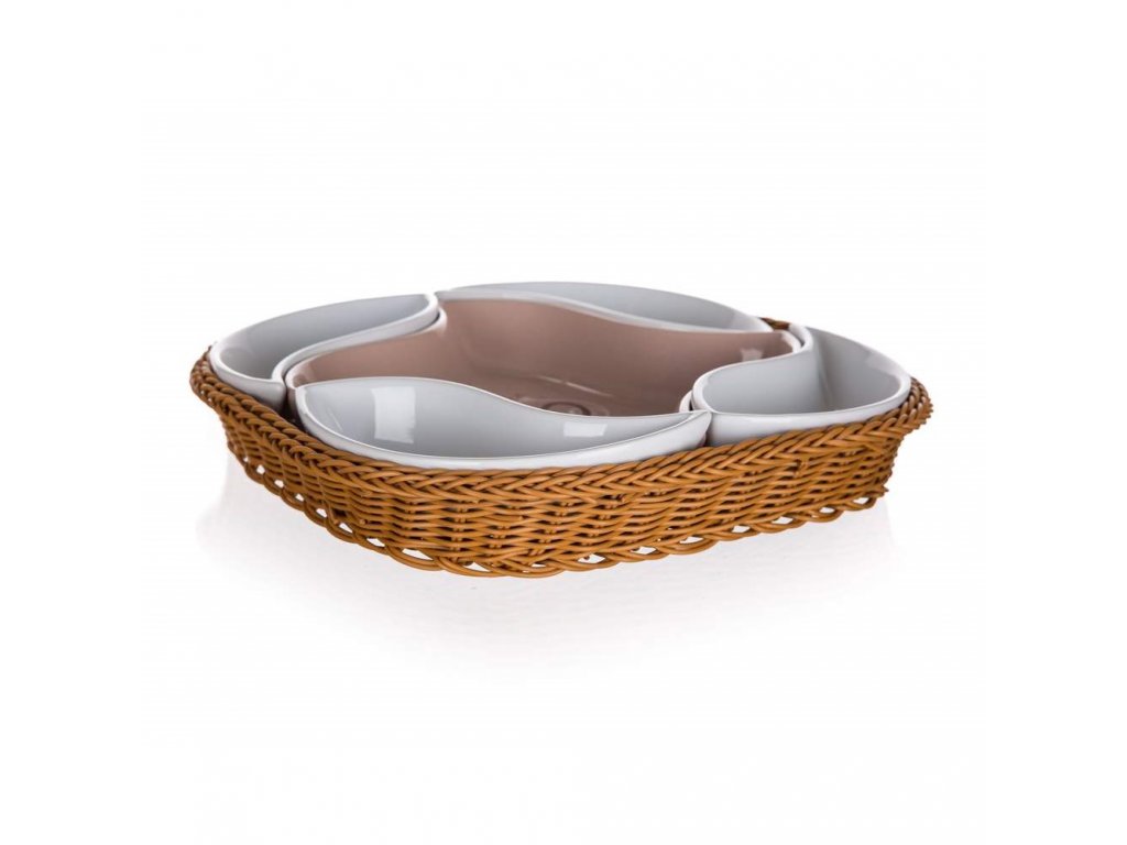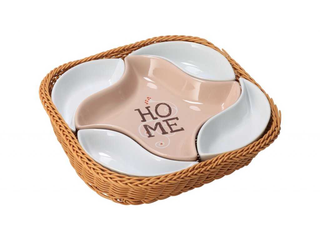 Štýlová 5 dielna sada misiek Home v prútenom košíku. Vhodné na servírovanie slaných aj sladkých pokrmov.
