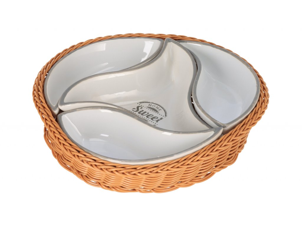 Štýlová sada misiek v košíku Home Sweet Home je ideálna na servírovanie sladkých i slaných pochutín ako sú napríklad oriešky, cukríky a podobne.