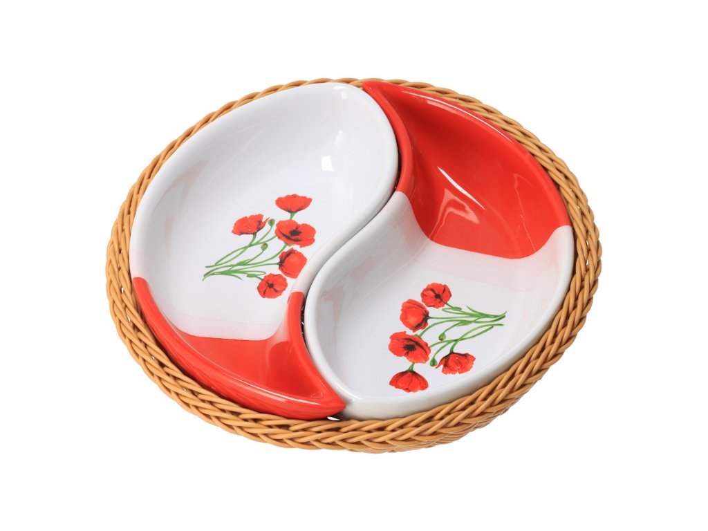 Originálna dvojdielna sada misiek Red Poopy v košíku. Vhodné na servírovanie slaných aj sladkých pokrmov.