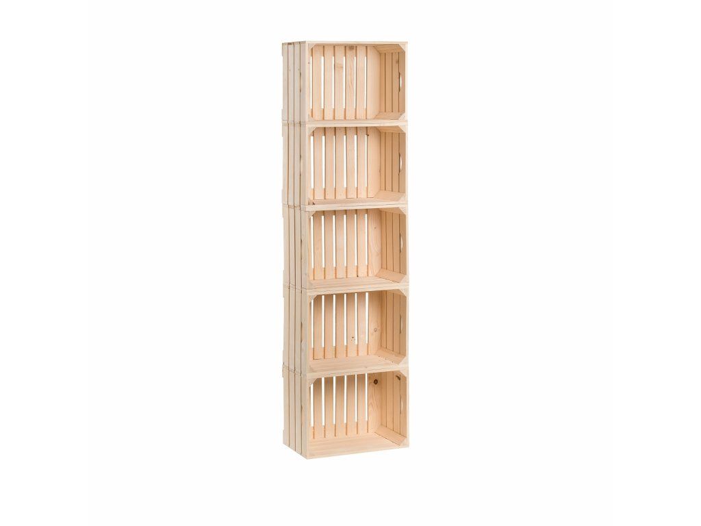 Päť debničiek z borovicového dreva tvorí regál, ktorý využijete doma, ale aj v dielni či na záhrade. Skvele poslúži na skladovanie náradia alebo ako knižnica.