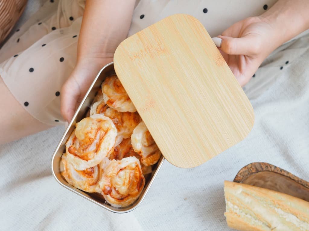 Vďaka bambusovému veku so silikónovým tesnením a dodatočne zaisteným pevnou gumou budú uložené potraviny v úplnom bezpečí.