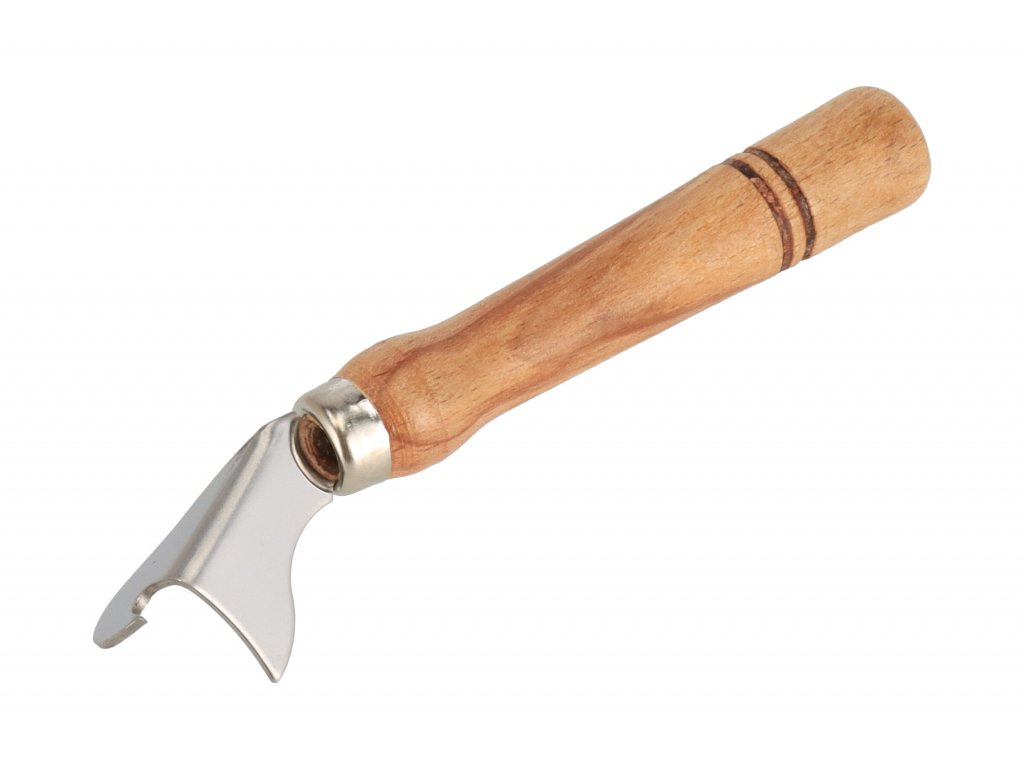 Kvalitne vyhotovený otvárač na konzervy so zaujímavým vzhľadom. Kombinácia bukového dreva a kovu.
