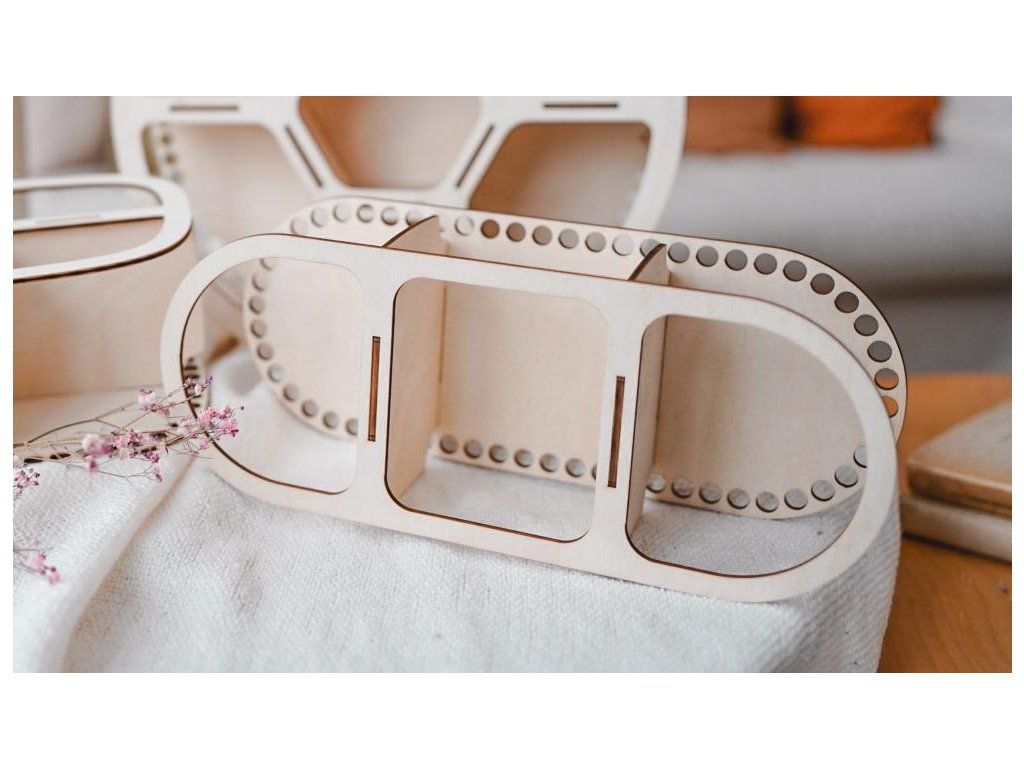 Konštrukcia z brezovej preglejky vám uľahčí prácu pri tvorbe háčkovaného organizéra. Do priehradiek môžete uložiť čaje, kozmetiku, kancelárske potreby aj najrôznejšie drobnosti.