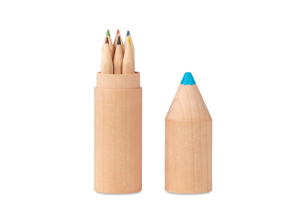 Súprava obsahuje 6 farebných pasteliek uložených v originálnej drevenej krabičke v tvare pastelky.
