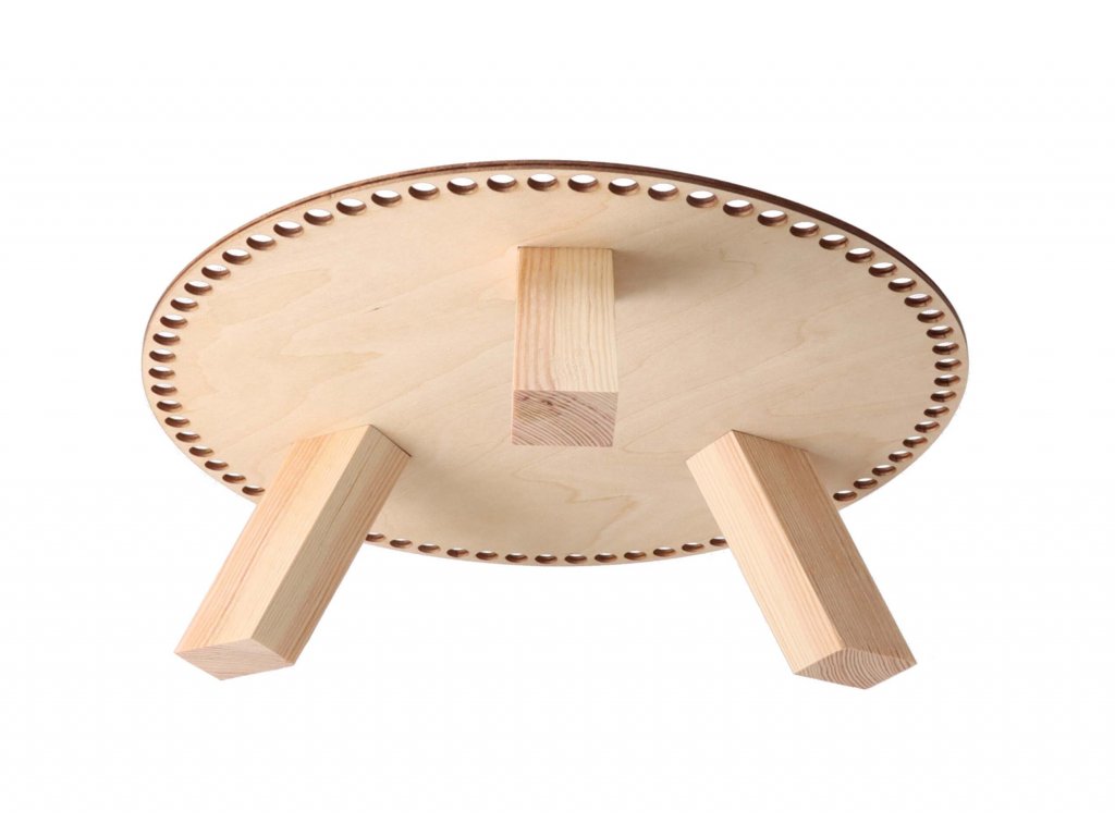 Okrúhly drevený podstavec z brezovej preglejky hrúbky 3 mm s otvormi s priemerom 9 mm ponúkame v rôznych veľkostiach. Je vhodný na výrobu háčkovaného obalu na kvetináč zo špagátových priadzí.