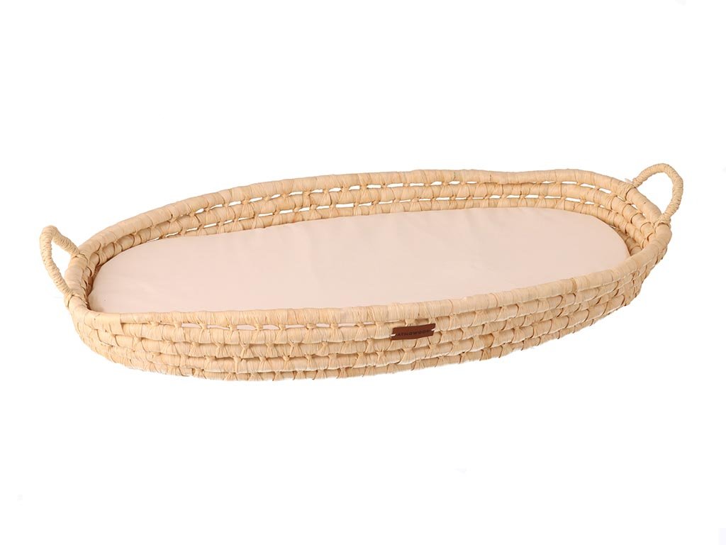 Súčasťou košíka je mäkký prebaľovací matrac, ktorý zaisťuje komfort vášho bábätka pri každej výmene plienok. Košík je vyrobený z odolných a prírodných materiálov s priedušným výpletom, ktorý umožňuje cirkuláciu vzduchu a jednoduchú údržbu. Praktický dizajn zabezpečuje, že všetky potrebné veci budete mať po ruke a prebaľovanie bude rýchle a pohodlné.
