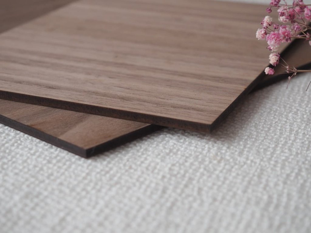 Drevovláknitá doska s dyhou s dekorom amerického orecha je veľmi pevný a suchý materiál, vďaka ktorému je laserové spracovanie rýchle, jednoduché a nezanecháva žiadny prach. Dosku môžete použiť na tvorenie rôznych dekorácií alebo dokonca aj nábytku.