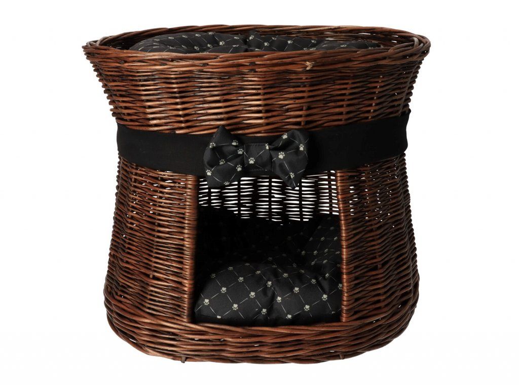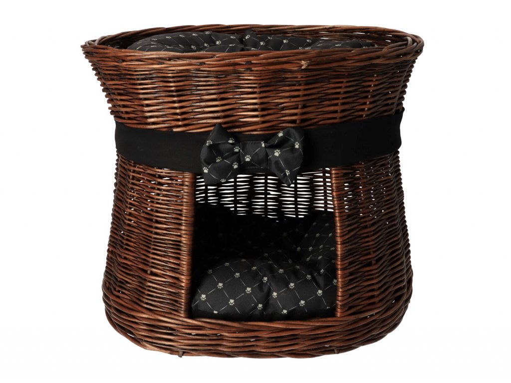Prútená mačacia búda vystlaná čiernymi poduškami so vzorom zvieracích labiek. Dopraje nádych prírody aj vášmu miláčikovi, ktorý sa do tohto pelechu zamiluje na prvý pohľad.