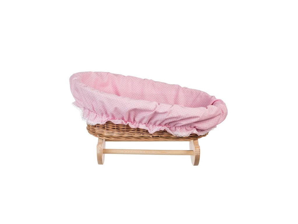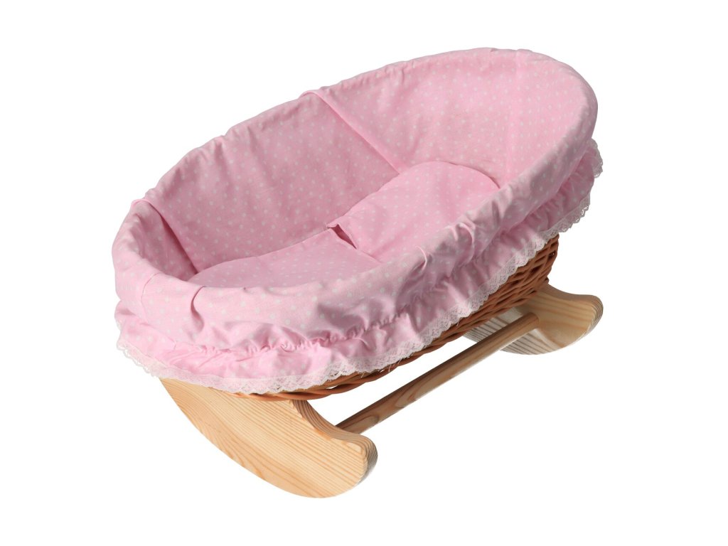 Tradičná prútená postieľka pre bábiky s moderným obšitím.
