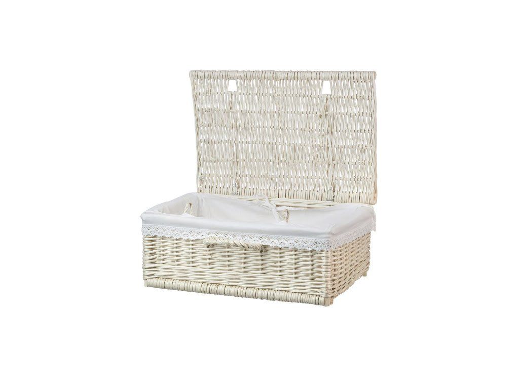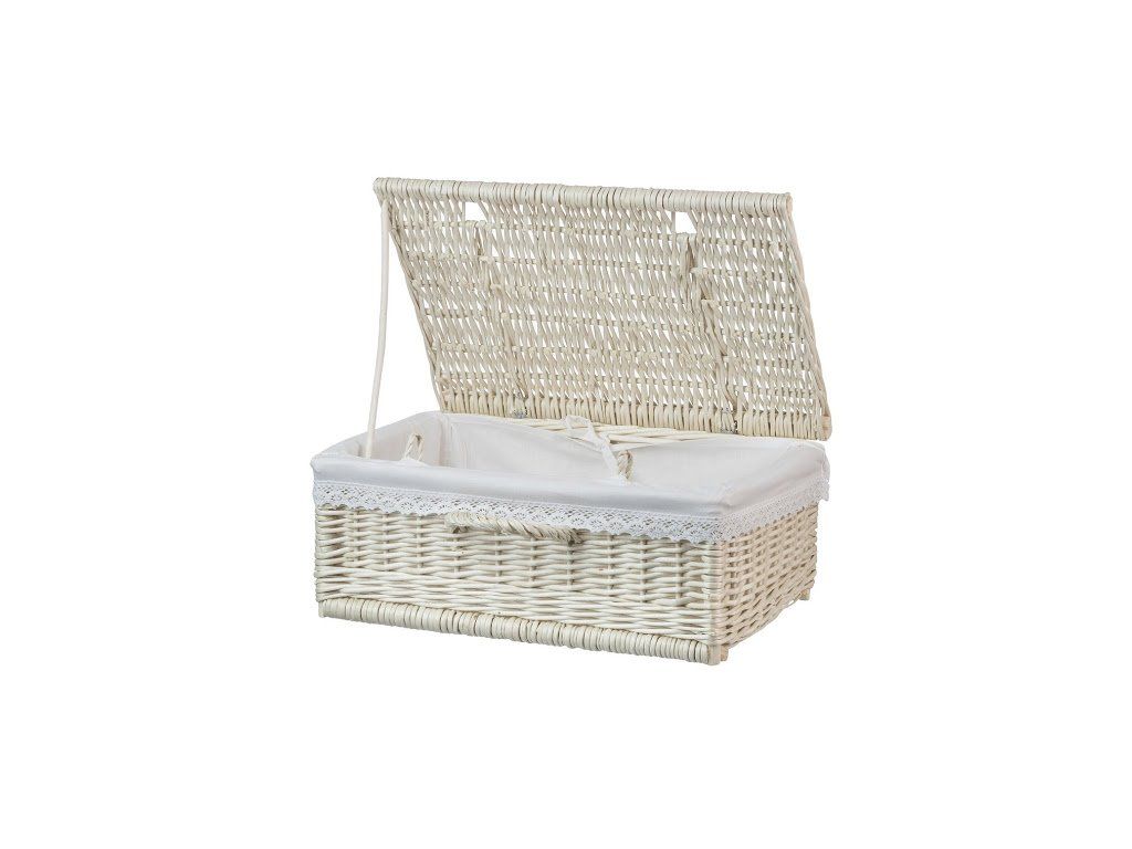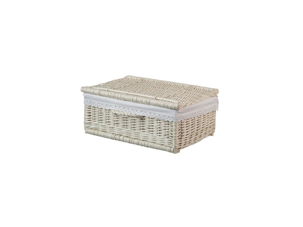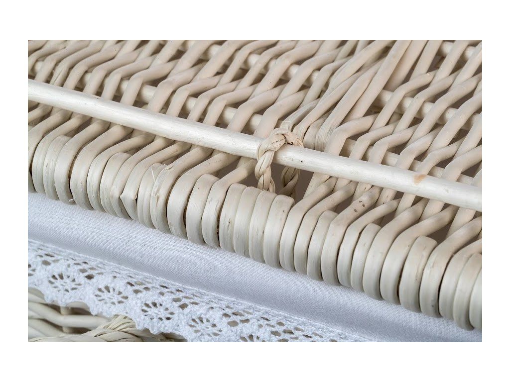 Ľahký hranatý košík z lúpaného prútia s elegantnou čipkou, ktorý ukryje všetko čo nechcete mať na očiach. Košík je vystlaný bielou látkou ktorá je vyberateľná a čas od času je možné ju vytiahnuť a vyprať.