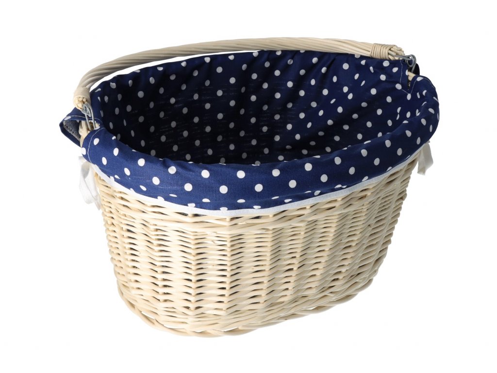 Jeho ozdobou je elegantná modrá látka s bielymi bodkami.