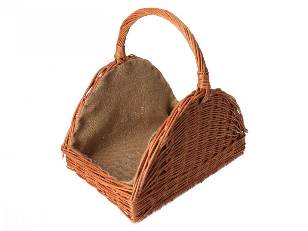 Prútený kôš na drevo zaoblený svetlý s jutou