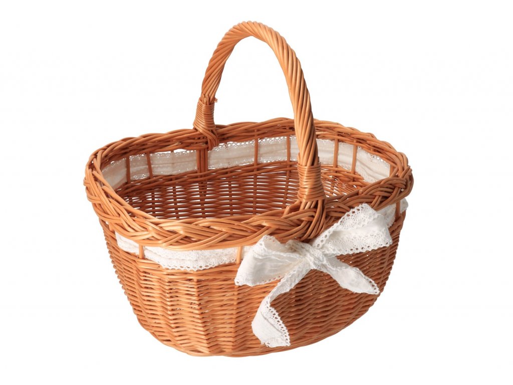 Prútený a ručne pletený nákupný kôš s elegantnou bielou mašľou, do ktorého sa zmestí nákup pre celú rodinu. Buďte aj v obyčajných situáciách neobyčajne štýloví.