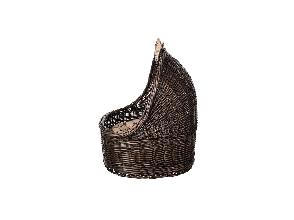 Prútený pelech pre psa so strieškou - tmavý s béžovou mašľou