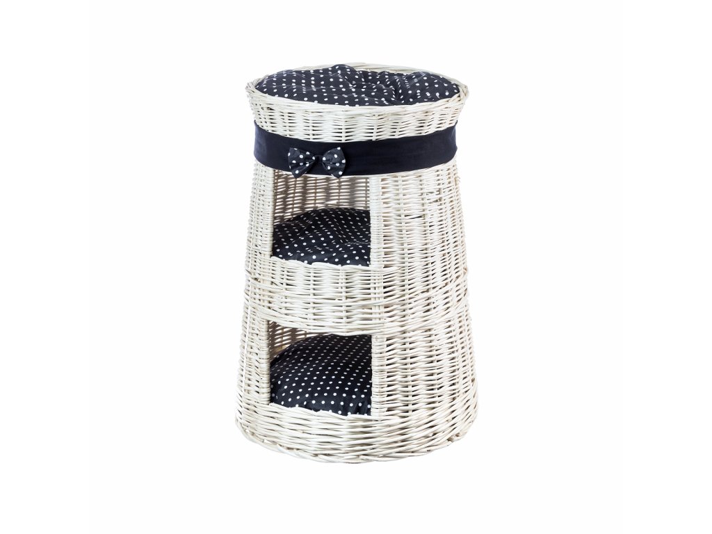 Prútený pelech s búdou dvojposchodový biely - obšitý