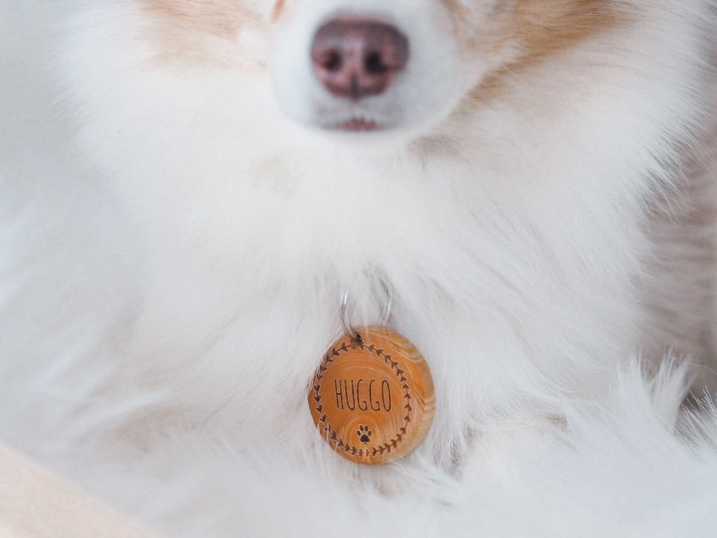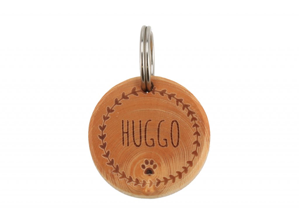 Drevená psia známka s menom vášho štvornohého miláčika je originálnym doplnkom. Vďaka svojmu prírodnému vzhľadu bude ozdobou každého obojku.