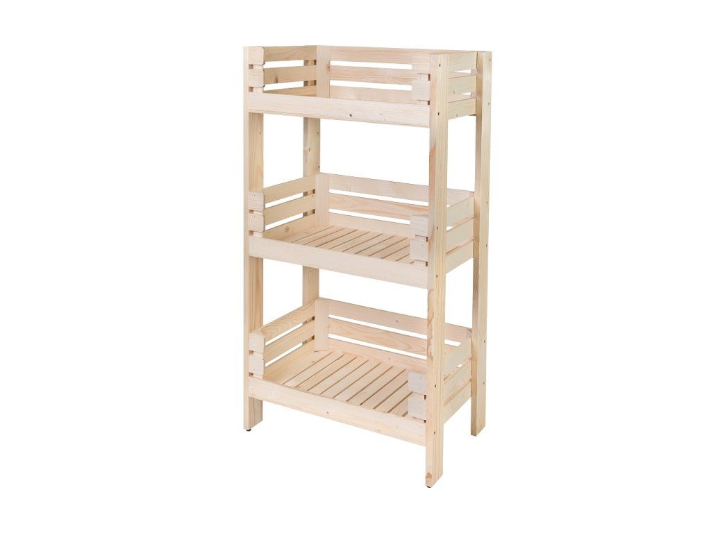 Tento drevený regál je vyrobený zo borovicového dreva a vďaka tomu, že je vybavený tromi policami si nájde svoje využitie doma v obývačke, ale aj v pivnici, garáži alebo skladovacích priestoroch.