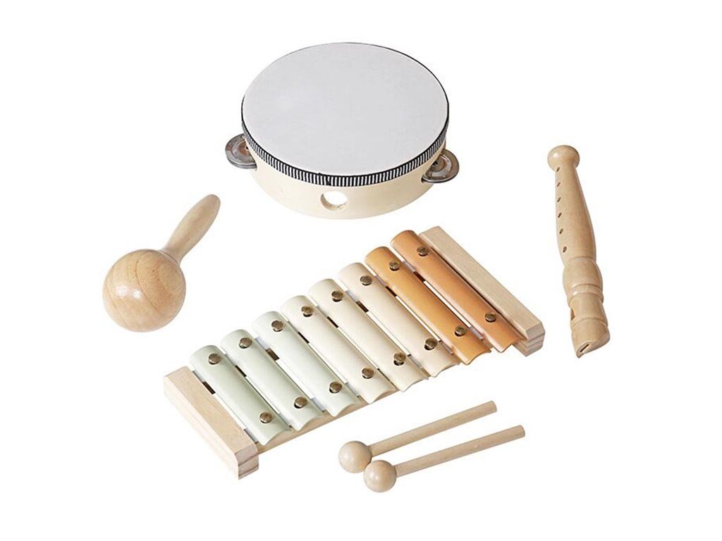 Všetky nástroje sú vyrobené z kvalitného prírodného dreva a doplnené o jemné farby, ktoré pôsobia upokojujúcim a hravým dojmom. Deti sa vďaka nim naučia rozlišovať zvuky, zlepšujú svoj sluch, rytmus aj motoriku - a hlavne si užijú veľa zábavy.