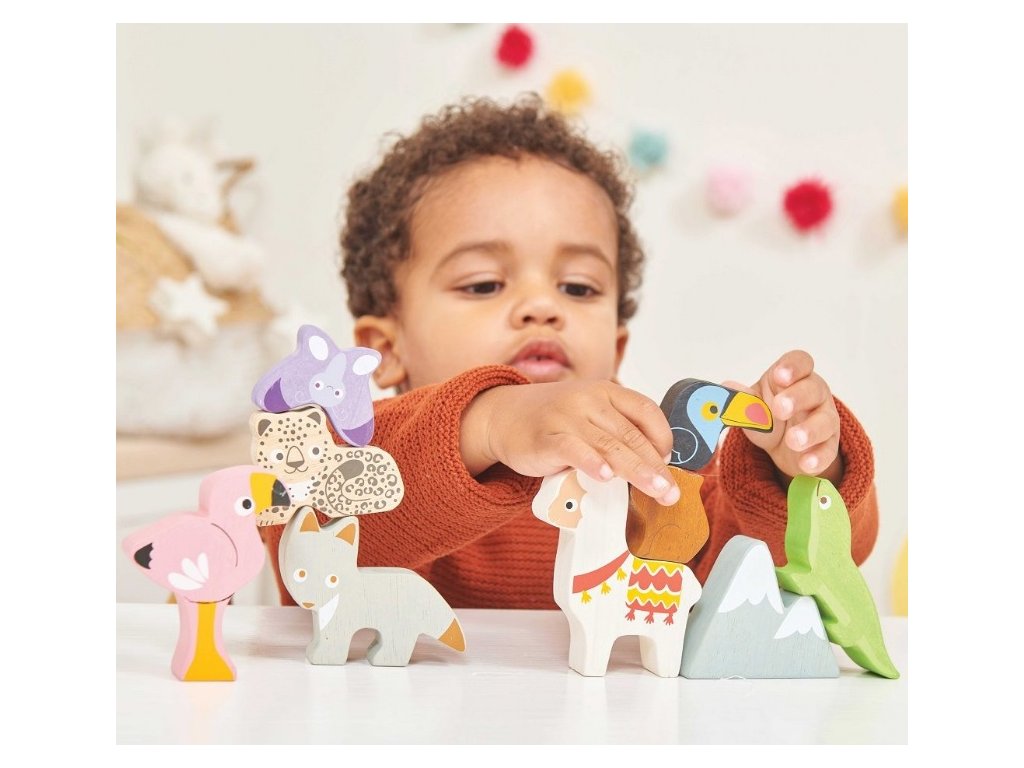 Farebné zvieratká z pohoria And zaistia deťom skvelé dobrodružstvo. Deti si rozvíjajú zručnosť a jemnú motoriku formou zábavy. Môžu stavať rôzne veže a potom sledovať, ako padajú.