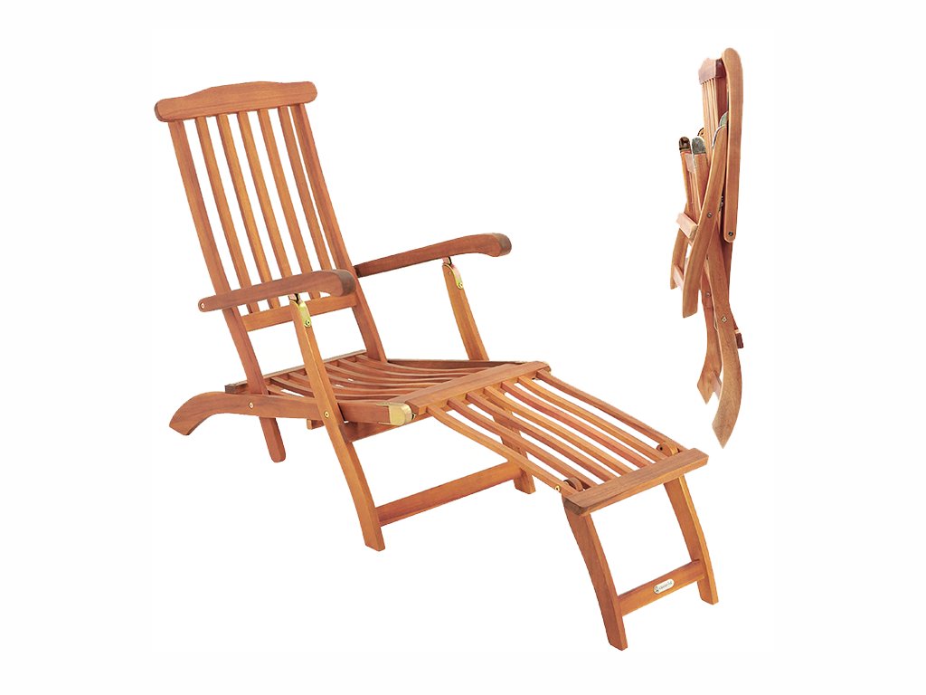 Skladacie ležadlo z masívneho akáciového dreva poskytuje vysoký komfort sedenia vďaka nastaviteľnému operadlu a pohodlnej podnožke. Podnožku je možné jednoducho odňať, takže ležadlo ľahko premeníte na pohodlnú stoličku.