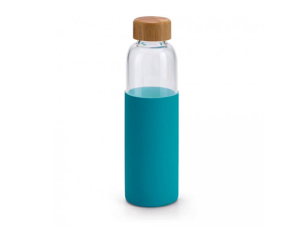 Jednostenná cestovná fľaša vyrobená z borosilikátového skla bez BPA v silikónovom puzdre jemnom na dotyk.