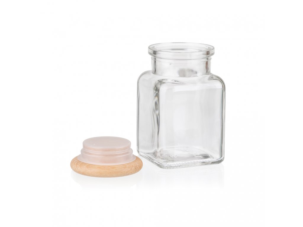 Sklenená korenička v kombinácii s bukovým viečkom a skvele padnúcim tesnením bude krásnym doplnkom vo vašej organizovanej kuchyni.