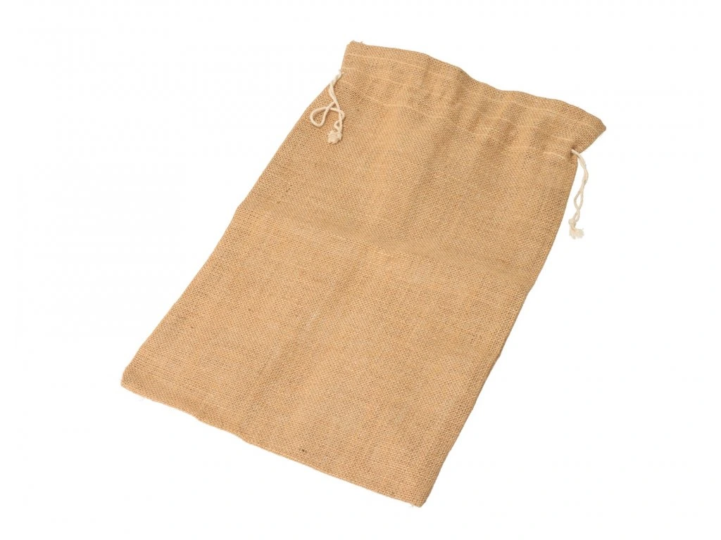 Veľké sťahovacie vrecúško z juty je ideálnym riešením pre skladovanie zeleniny, ovocia alebo napríklad zrnkovej kávy. Jeho štruktúra je celistvá a zároveň priedušná, takže tvorí skvelú ochranu pre potraviny a zabraňuje ich kazeniu.