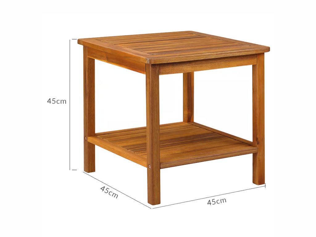 Stolík z akáciového dreva s policou 45 x 45 cm