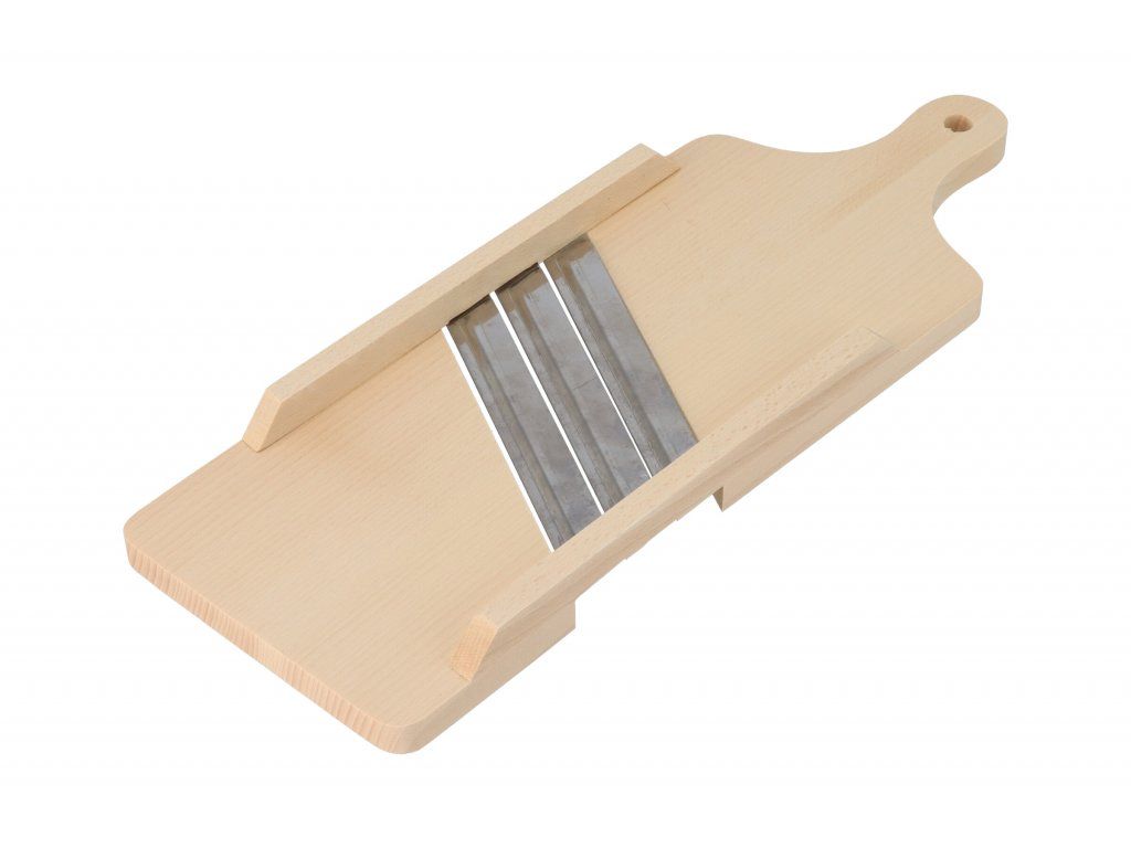 Tento drevený krájač s 3 čepeľami je skvelým pomocníkom na krájanie domácej kapusty, ktorú tak budete mať spracovanú v priebehu niekoľkých minút. Krájač sa tiež hodí na krájanie ďalších druhou zeleniny ako uhorky, mrkvy alebo napríklad zeleru.