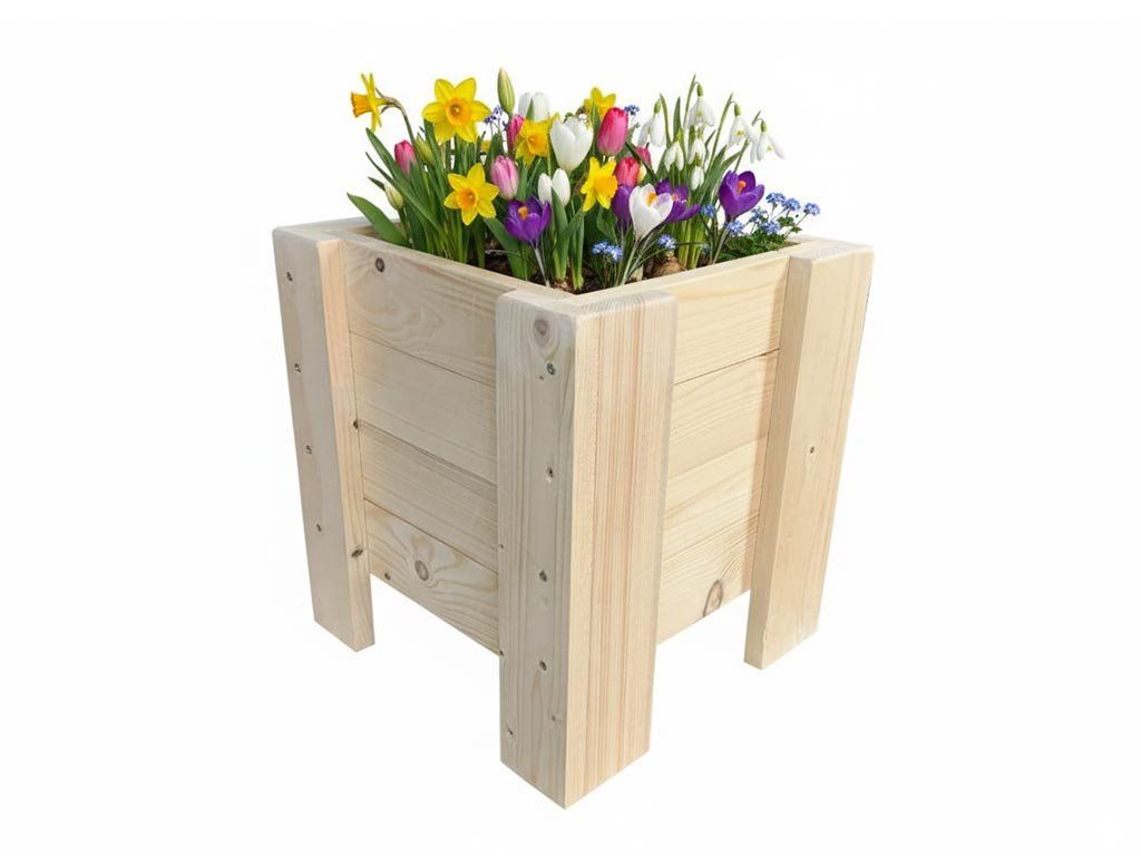Štvorcový drevený truhlík 33 cm - borovica