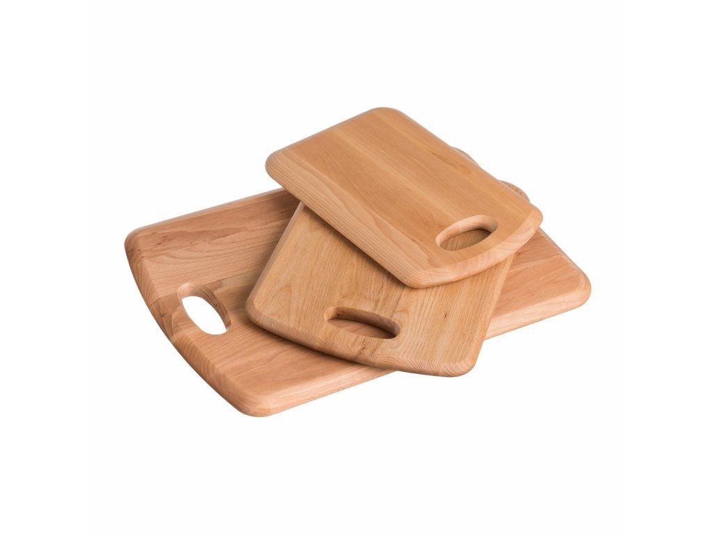 Sada troch dosiek z bukového dreva sa stane skvelým pomocníkom vo vašej kuchyni. Každá doštička má inú veľkosť a všetky sú ošetrené prírodným olejom.