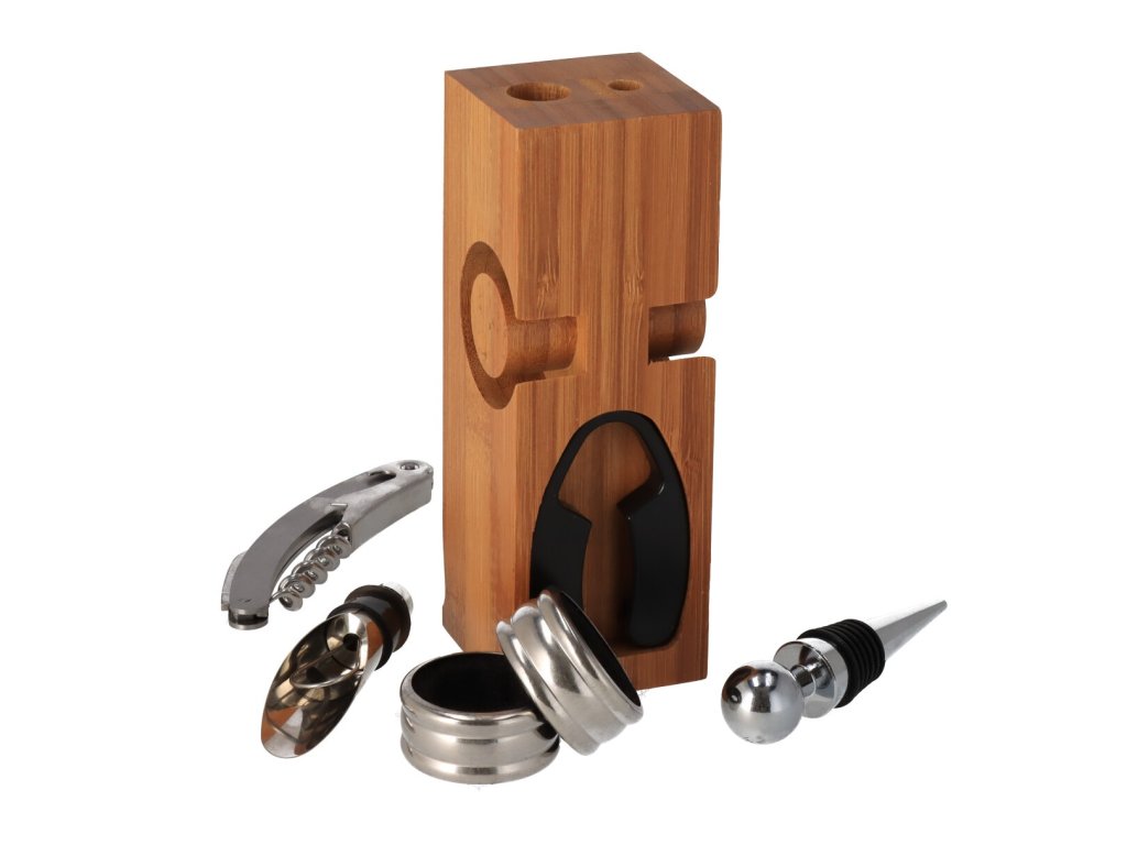 Súprava na víno v drevenom stojane