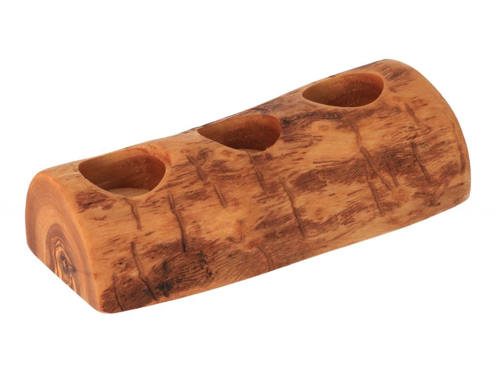 Drevený svietnik z olivového dreva v originálnom tvare rozžiari každé miesto a spoločne so sviečkami bude krásnou a unikátnou ozdobou.